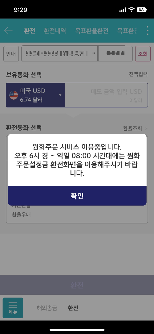 여기까지가 일반적으로 달러 매수/매도 하는 방법입니다. 환전만 누르면 참 쉬운데요.